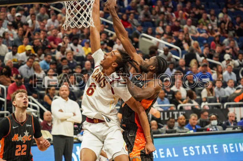 Orlando, Florida, USA, April 5, 2022, Cleveland Cavaliers Center Moses Brown #6 attempt to make a basket as Mo Bamba #5 adds pressure in the first quarter at the Amway Center. (Photo Credit: Marty Jean-Louis)