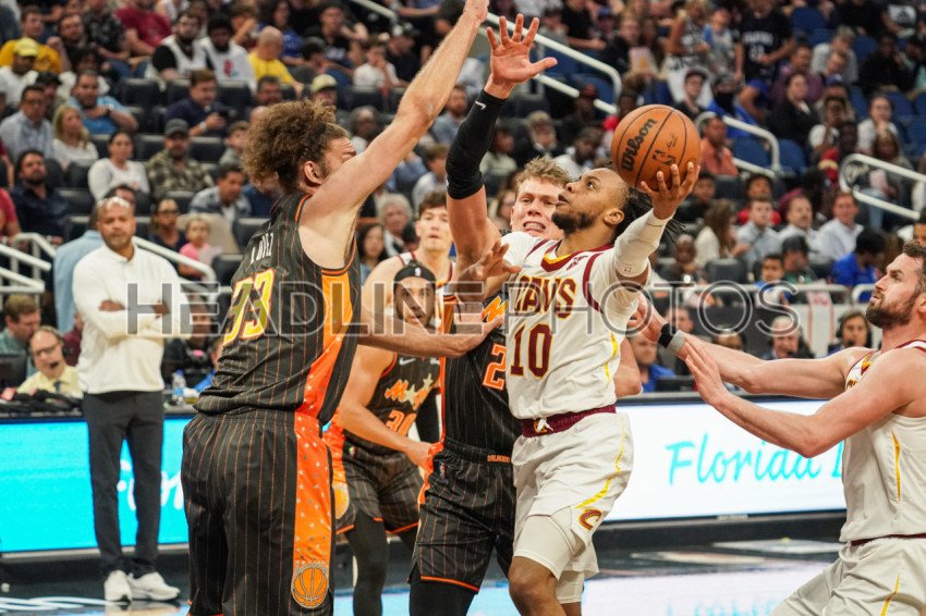 Orlando, Florida, USA, April 5, 2022, Cleveland Cavaliers Point Guard Tim Frazier #10 attempt to make a basket as he gets pressure from Robin Lopez #33 in the first half at the Amway Center. (Photo Credit: Marty Jean-Louis)