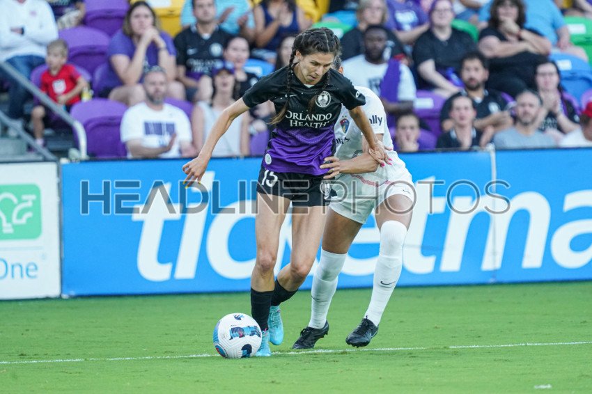 Orlando, Florida, USA, April 16, 2022, Orlando Pride Midfielder Erika Tymrak #15 fight to keep the ball during the first half at Exploria Stadium. (Photo Credit: Marty Jean-Louis)