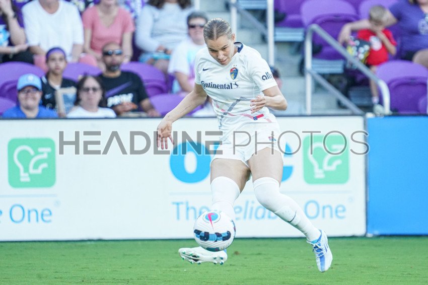 Orlando, Florida, USA, April 16, 2022, North Carolina Courage defender Merritt Mathias #11 makes a pass towards the goal during the first half at Exploria Stadium. (Photo Credit: Marty Jean-Louis)