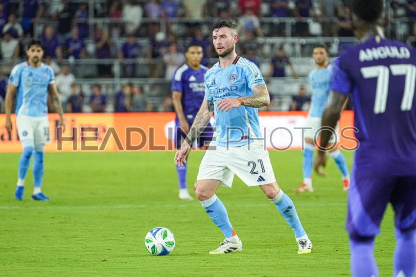 Orlando, Florida, USA, July 16, 2025, New York City FC player Aiden O'Neill #21 look to make a pass at Inter&Co Stadium. (Photo Credit: Marty Jean-Louis)