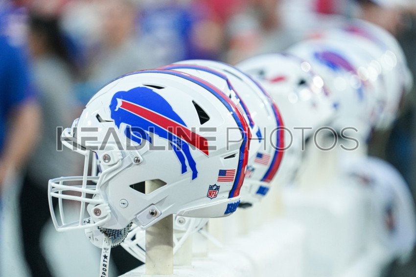 Tampa Bay, Florida, USA, August 23, 2025, Buffalo Bills helmets at Raymond James Stadium. (Photo Credit: Marty Jean-Louis)