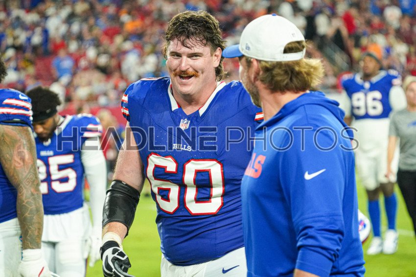 Tampa Bay, Florida, USA, August 23, 2025, Buffalo Bills player Dan Feeney #60 at Raymond James Stadium. (Photo Credit: Marty Jean-Louis)