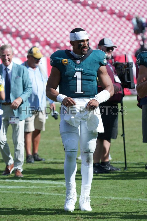 Tampa Bay, Florida, USA, September 28, 2025, Philadelphia Eagles quarterback Jalen Hurts #1 at Raymond James Stadium. (Photo Credit: Marty Jean-Louis)