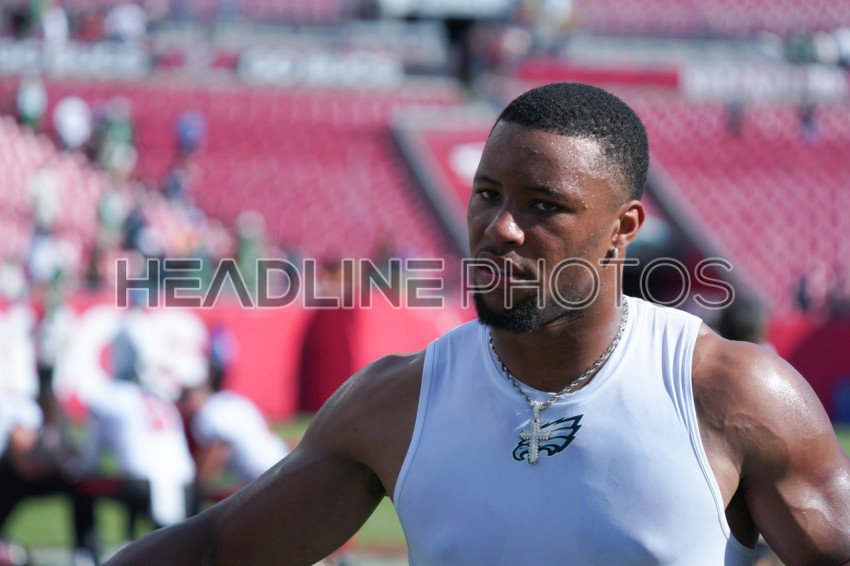 Tampa Bay, Florida, USA, September 28, 2025, Philadelphia Eagles runningback Saquon Barkley #26 at Raymond James Stadium. (Photo Credit: Marty Jean-Louis)