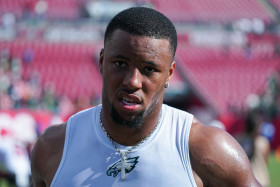 Tampa Bay, Florida, USA, September 28, 2025, Philadelphia Eagles runningback Saquon Barkley #26 at Raymond James Stadium. (Photo Credit: Marty Jean-Louis)
