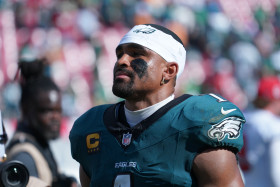 Tampa Bay, Florida, USA, September 28, 2025, Philadelphia Eagles quarterback Jalen Hurts #1 at Raymond James Stadium. (Photo Credit: Marty Jean-Louis)