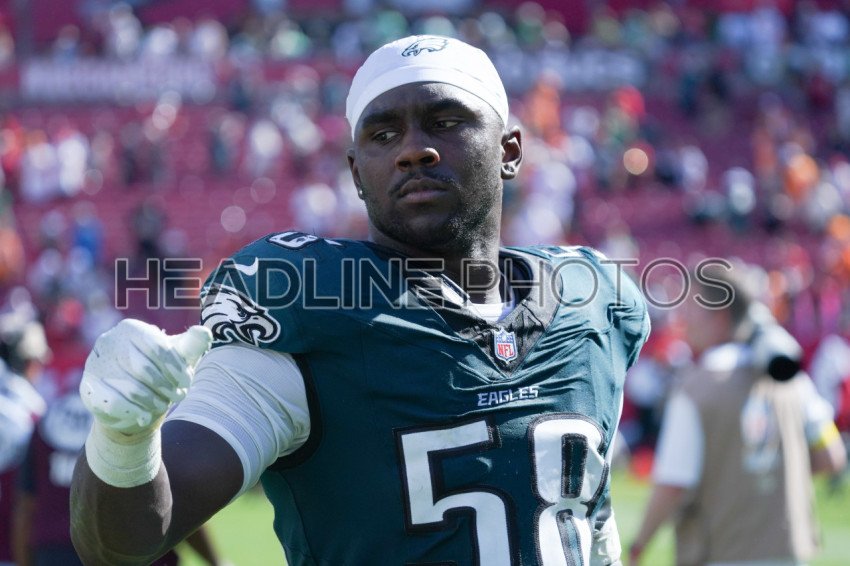 Tampa Bay, Florida, USA, September 28, 2025, Philadelphia Eagles playerJalyx Hunt #58 at Raymond James Stadium. (Photo Credit: Marty Jean-Louis)
