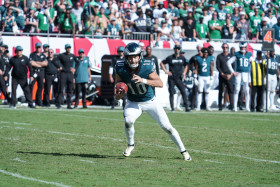 Tampa Bay, Florida, USA, September 28, 2025, Philadelphia Eagles player Braden Mann #10 on the run at Raymond James Stadium. (Photo Credit: Marty Jean-Louis)