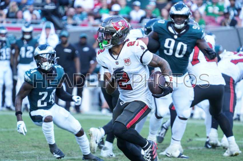 Tampa Bay, Florida, USA, September 28, 2025, Tampa Bay Buccaneers player Emeka Egbuka #2 on the run at Raymond James Stadium. (Photo Credit: Marty Jean-Louis)