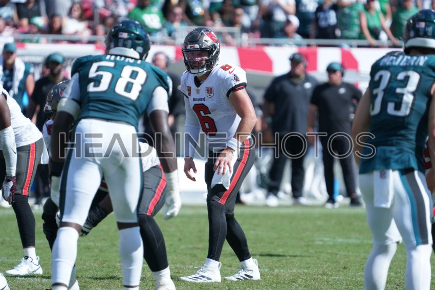 Tampa Bay, Florida, USA, September 28, 2025, Tampa Bay Buccaneers quarterback Baker Mayfield #6 at Raymond James Stadium. (Photo Credit: Marty Jean-Louis)