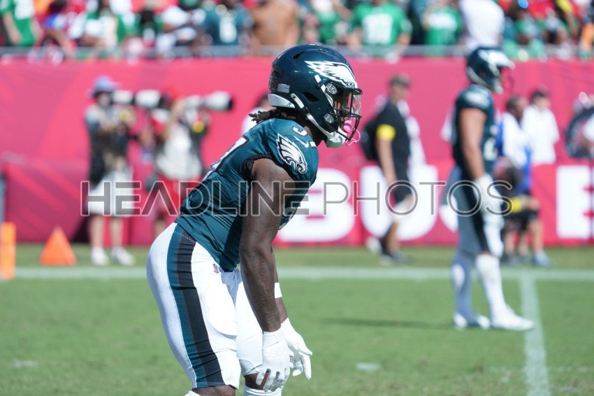 Tampa Bay, Florida, USA, September 28, 2025, Philadelphia Eagles players Tank Bigsby #37 and Will Shipley #28 at Raymond James Stadium. (Photo Credit: Marty Jean-Louis)