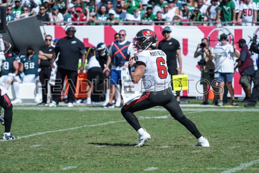 Tampa Bay, Florida, USA, September 28, 2025, Tampa Bay Buccaneers quarterback Baker Mayfield #6 looks to make a pass at Raymond James Stadium. (Photo Credit: Marty Jean-Louis)