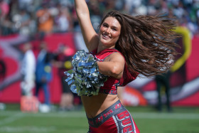 Tampa Bay, Florida, USA, September 28, 2025, Tampa Bay Buccaneers cheerleader performing at Raymond James Stadium. (Photo Credit: Marty Jean-Louis)