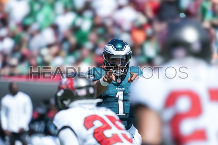 Tampa Bay, Florida, USA, September 28, 2025, Philadelphia Eagles quarterback Jalen Hurts #1 at Raymond James Stadium. (Photo Credit: Marty Jean-Louis)