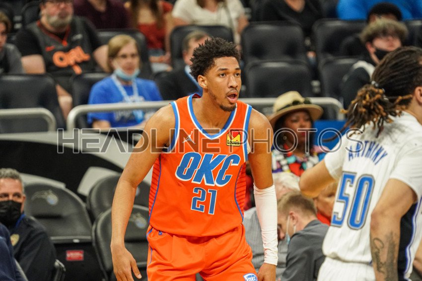Orlando, Florida, USA, March 20, 2022, Oklahoma Thunder Shooting Guard Aaron Wiggins # 21 in the first half at the Amway Center. (Photo Credit: Marty Jean-Louis)