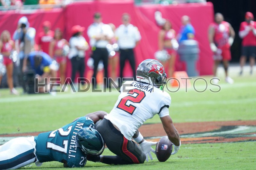 Tampa Bay, Florida, USA, September 28, 2025, Tampa Bay Buccaneers wide receiver Emeka Egbuka #2 misses the pass at Raymond James Stadium. (Photo Credit: Marty Jean-Louis)