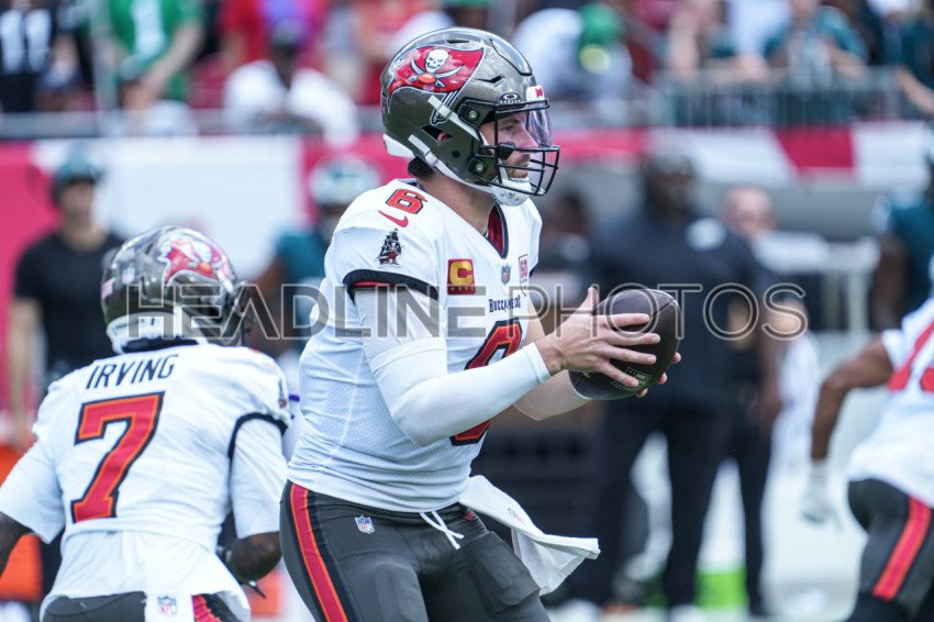 Tampa Bay, Florida, USA, September 28, 2025, Tampa Bay Buccaneers quarterback Baker Mayfield #6 looks to make a pass at Raymond James Stadium. (Photo Credit: Marty Jean-Louis)