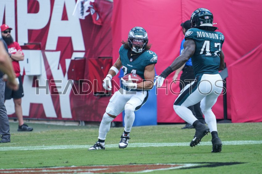Tampa Bay, Florida, USA, September 28, 2025, Philadelphia Eagles safety Sydney Brown #21 celebrate a touchdown at Raymond James Stadium. (Photo Credit: Marty Jean-Louis)