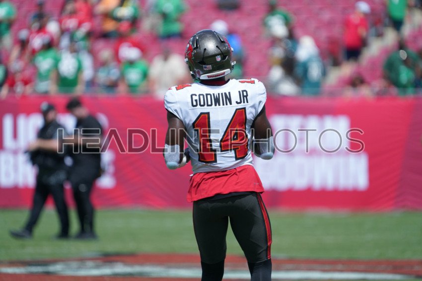 Tampa Bay, Florida, USA, September 28, 2025, Tampa Bay Buccaneers wide receiver Chris Godwin Jr #14 warming up at Raymond James Stadium. (Photo Credit: Marty Jean-Louis)