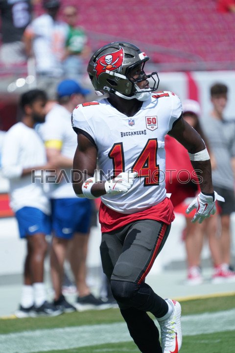 Tampa Bay, Florida, USA, September 28, 2025, Tampa Bay Buccaneers wide receiver Chris Godwin Jr #14 warming up at Raymond James Stadium. (Photo Credit: Marty Jean-Louis)
