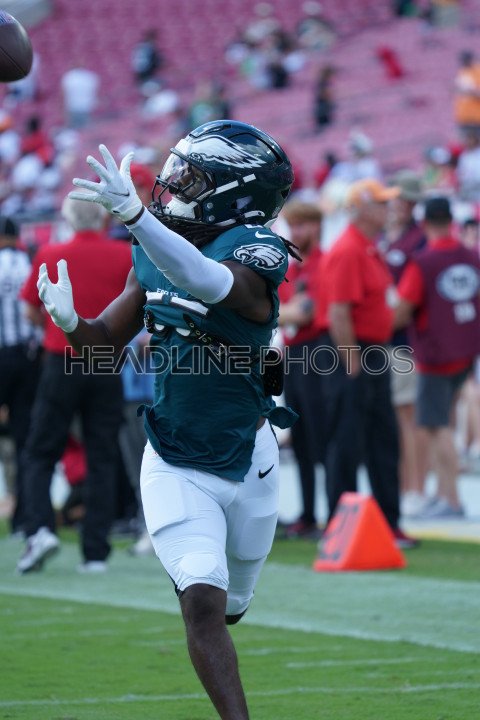 Tampa Bay, Florida, USA, September 28, 2025, Philadelphia Eagles corner back Mac McWilliams #22 warning up at Raymond James Stadium. (Photo Credit: Marty Jean-Louis)
