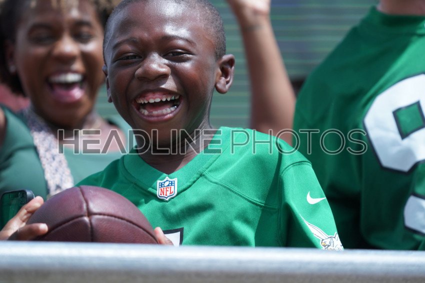 Tampa Bay, Florida, USA, September 28, 2025, Philadelphia Eagles fan overjoy after receiving a ball from Saquon Barkley #26 at Raymond James Stadium. (Photo Credit: Marty Jean-Louis)