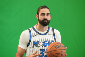 Orlando, Florida, USA, September 29, 2025, Goga Bitadze during the Orlando Magic Media Day at the Advent Health Training Center. (Photo Credit: Marty Jean-Louis)