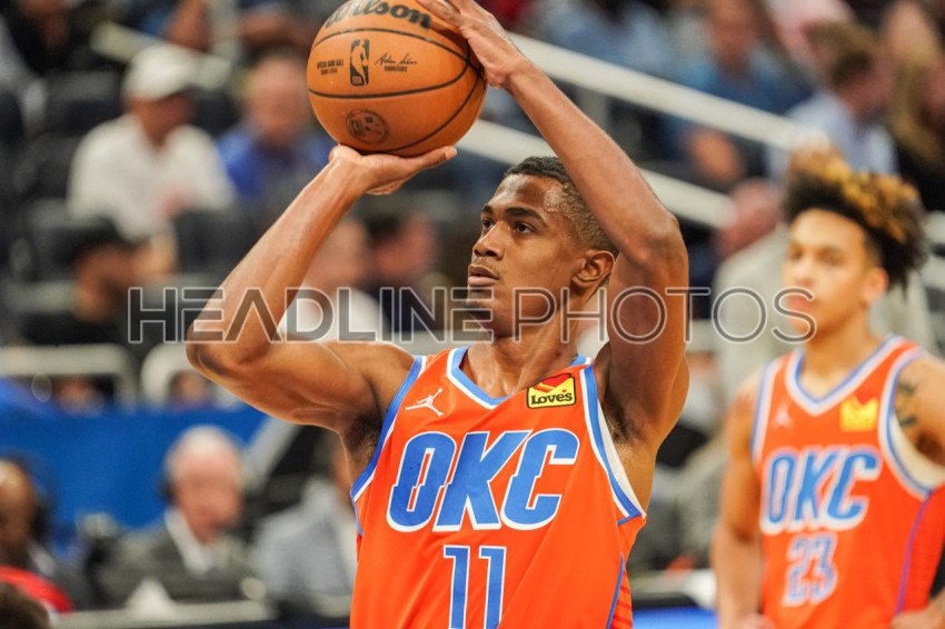 Orlando, Florida, USA, March 20, 2022, Oklahoma Thunder Point Guard Theo Maledon #11 Shoots a free throw during the first half at the Amway Center. (Photo Credit: Marty Jean-Louis)