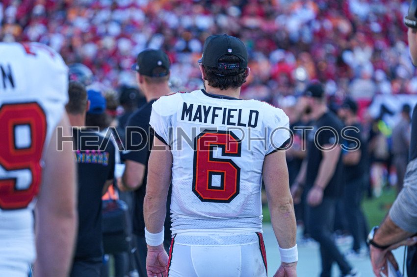 Tampa Bay, Florida, USA, October 12, 2025, Tampa Bay Buccaneers Baker Mayfield #6 at Raymond James Stadium. (Photo Credit: Marty Jean-Louis)