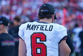 Tampa Bay, Florida, USA, October 12, 2025, Tampa Bay Buccaneers Baker Mayfield #6 at Raymond James Stadium. (Photo Credit: Marty Jean-Louis)