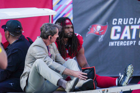 Tampa Bay, Florida, USA, October 12, 2025, San Francisco 49ers player Fred Warner #54 heads to the locker to get checked after potential injury at Raymond James Stadium. (Photo Credit: Marty Jean-Louis)