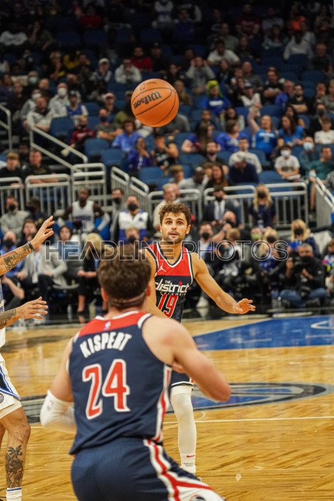 Orlando, Florida, USA, November 13, 2021, Washington Wizards Guard Raul Neto #19 makes a pass to teammate Corey Kispert #24 at the Amway Center. (Photo Credit: Marty Jean-Louis)