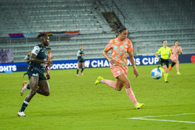Orlando, Florida, USA, October 15, 2025, Orlando Pride player Rafaelle #4 rushes to get the ball during the Concacaf W Champions Cup at Inter&Co Stadium. (Photo Credit: Marty Jean-Louis)