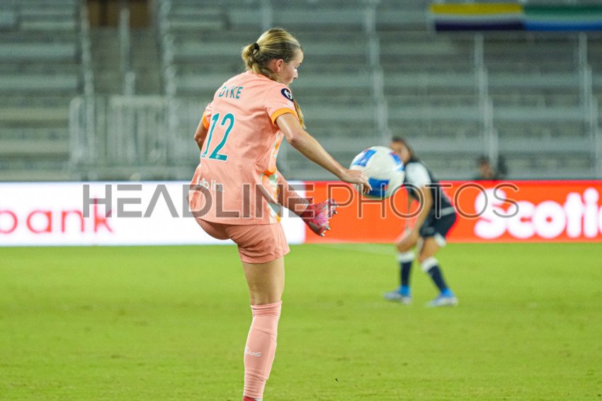 Orlando, Florida, USA, October 15, 2025, Orlando Pride player Cori Dyke #12 receives a pass during the Concacaf W Champions Cup at Inter&Co Stadium. (Photo Credit: Marty Jean-Louis)