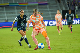Orlando, Florida, USA, October 15, 2025, Orlando Pride player Cori Dyke #12 controls the ball during the Concacaf W Champions Cup at Inter&Co Stadium. (Photo Credit: Marty Jean-Louis)