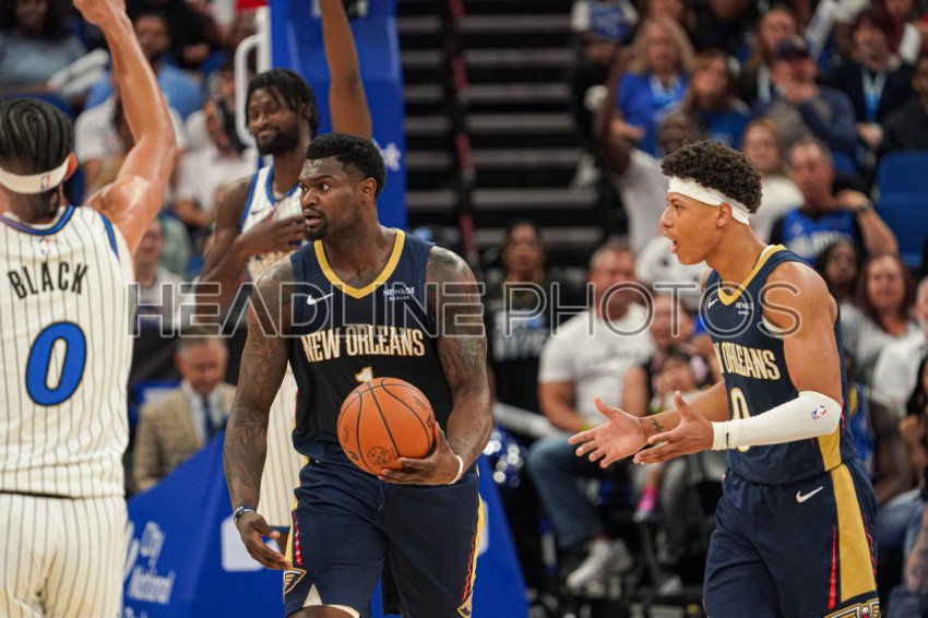 Orlando, Florida, USA, October 16, 2025, New Orleans Pelicans forward Zion Williamson #1 reacts after a call at the Kia Center. (Photo Credit: Marty Jean-Louis)