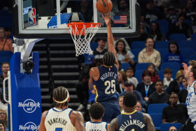 Orlando, Florida, USA, October 16, 2025, New Orleans Pelicans forward Trey Murphy III #25 makes a layup at the Kia Center. (Photo Credit: Marty Jean-Louis)