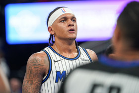 Orlando, Florida, USA, October 22, 2025, Orlando Magic forward Paolo Banchero #5 readies to shoot a free throw at the Kia Center. (Photo Credit: Marty Jean-Louis)