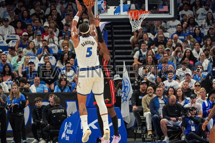 Orlando, Florida, USA, October 22, 2025, Orlando Magic forward Paolo Banchero #5 shoots a three at the Kia Center. (Photo Credit: Marty Jean-Louis)