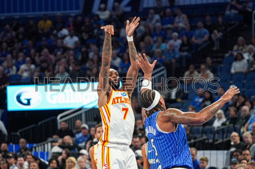 Orlando, Florida, USA, Ocober 24, 2025, Atlanta Hawks guard Nickeil Alexander-Walker #7 shoots a three at the Kia Center. (Photo Credit: Marty Jean-Louis)