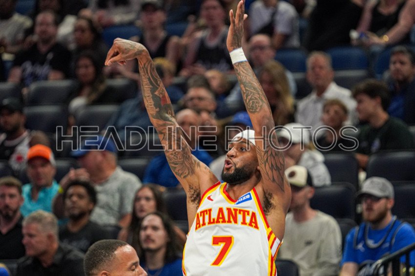 Orlando, Florida, USA, Ocober 24, 2025, Atlanta Hawks guard Nickeil Alexander-Walker #7 shoots a three at the Kia Center. (Photo Credit: Marty Jean-Louis)
