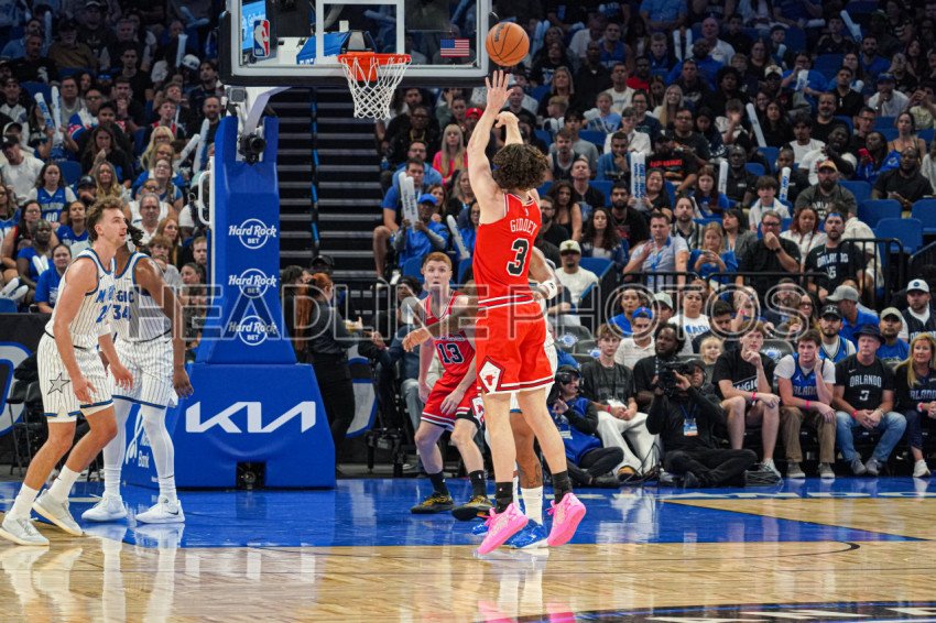 Orlando, Florida, USA, October 25, 2025, Chicago Bulls guard Josh Giddey #3 shoots a three at the Kia Center. (Photo Credit: Marty Jean-Louis)
