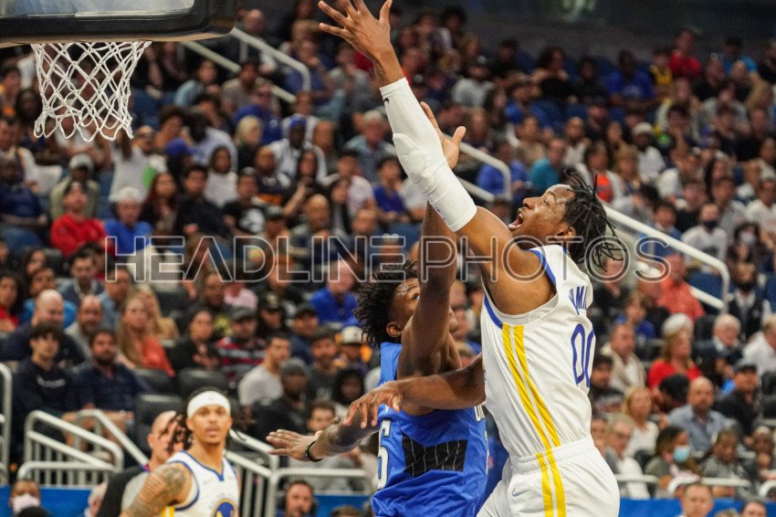 Orlando, Florida, USA, March 22, 2022, Golden State Warriors Power Forward Jonathan Kuminga #00 attempt to make a basket during the first half at the Amway Center. (Photo Credit: Marty Jean-Louis)