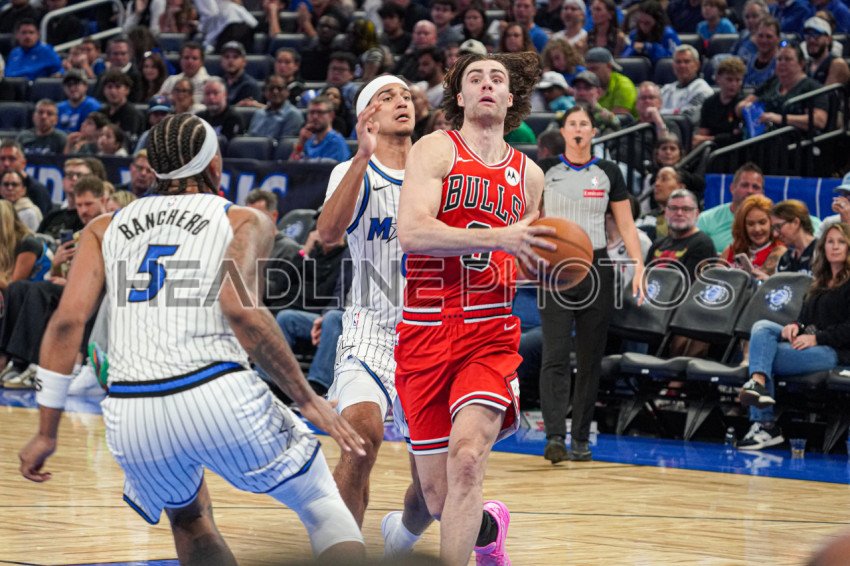 Orlando, Florida, USA, October 25, 2025, Chicago Bulls guard Josh Giddey #3 runs towards the basket at the Kia Center. (Photo Credit: Marty Jean-Louis)