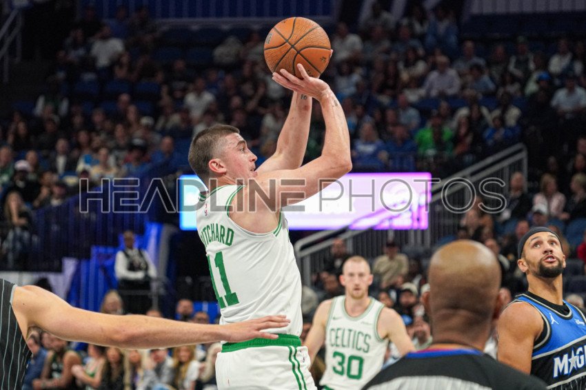 Orlando, Florida, USA, November 7, 2025, Boston Celtics guard Payton Pritchard #11 shoots a three at the Kia Center. (Photo Credit: Marty Jean-Louis)
