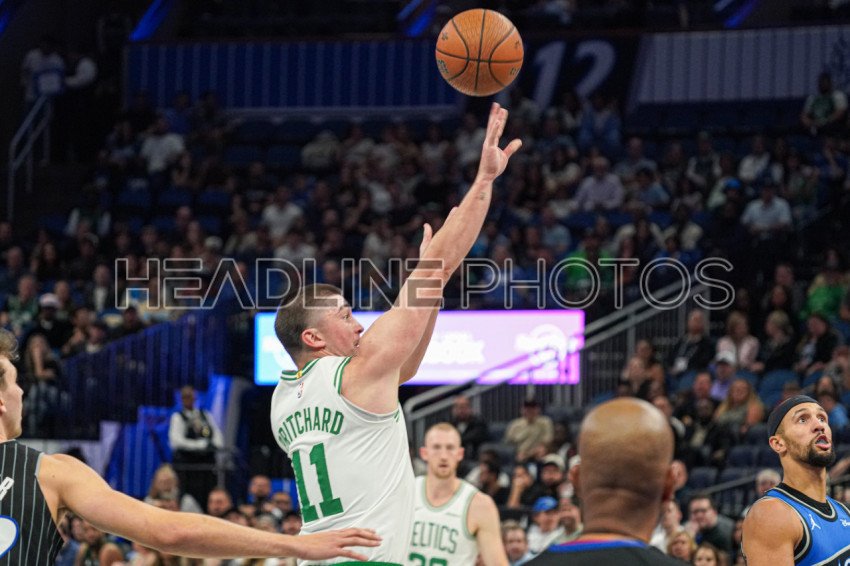 Orlando, Florida, USA, November 7, 2025, Boston Celtics guard Payton Pritchard #11 shoots a three at the Kia Center. (Photo Credit: Marty Jean-Louis)