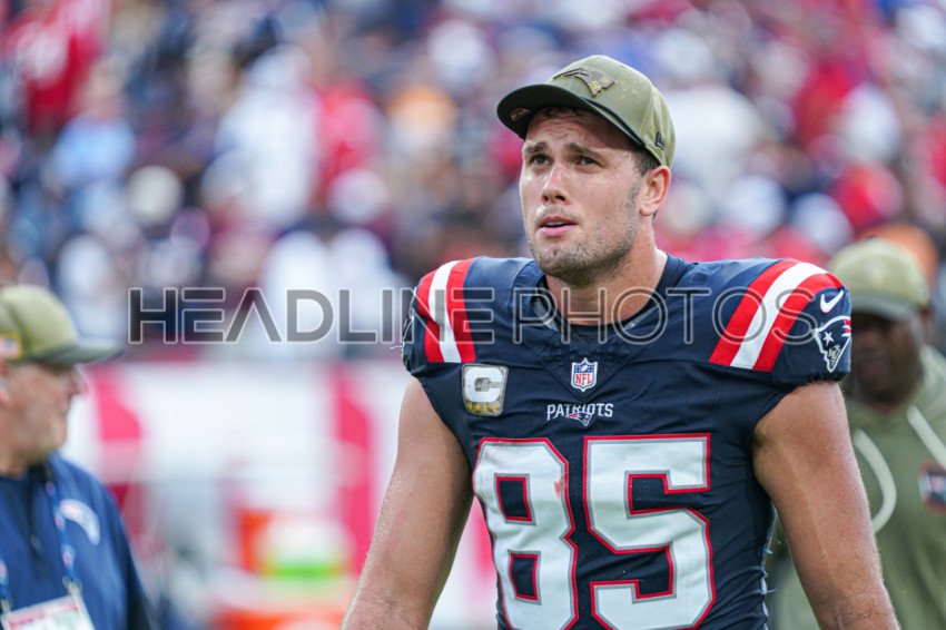 Tampa Bay, Florida, USA, November 9, 2025, New England Patriots tight end Hunter Henry #85 at Raymond James Stadium. (Photo Credit: Marty Jean-Louis)