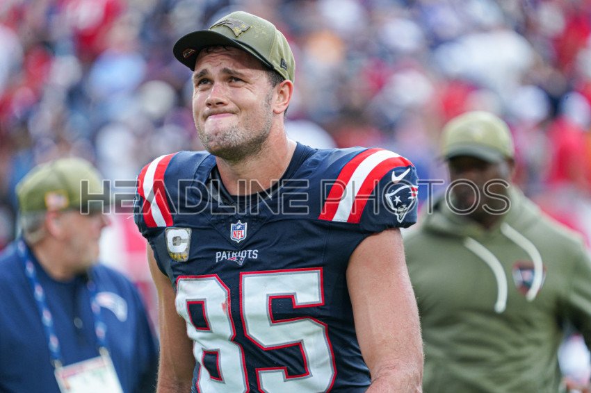 Tampa Bay, Florida, USA, November 9, 2025, New England Patriots tight end Hunter Henry #85 at Raymond James Stadium. (Photo Credit: Marty Jean-Louis)