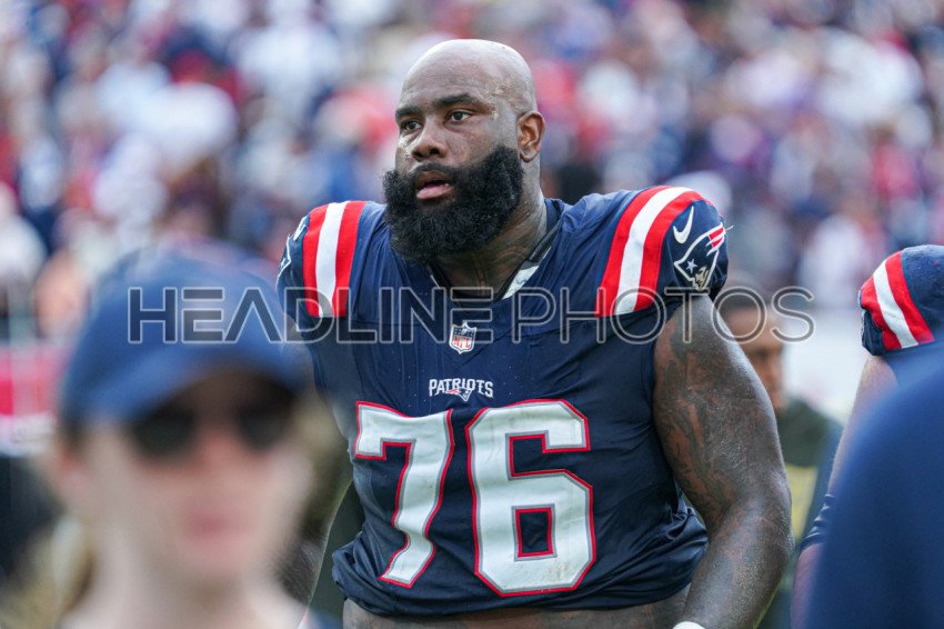 Tampa Bay, Florida, USA, November 9, 2025, New England Patriots player Morgan Moses #76 at Raymond James Stadium. (Photo Credit: Marty Jean-Louis)